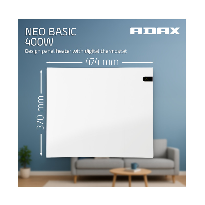 Radiateur électrique ADAX - Blanc - 400 W - 47,4 x 37 x 9 cm - Neo Basic NP04 KDT