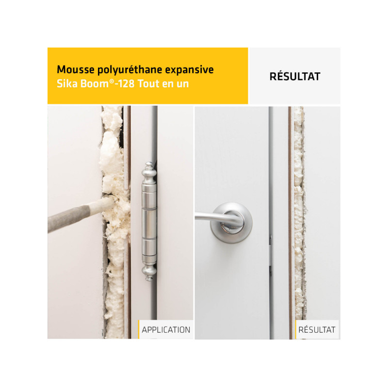Cette mousse expansive tout en un manuelle SikaBoom 128 est une mousse polyuréthane mono-composante expansive. Le produit tout en un durcit après extrusion, pour calfeutrer, isoler, et caler en intérieur et en extérieur. En effet, cette mousse est idéale en complément de fixation mécanique autour de châssis de portes et de fenêtres. Elle peut être utilisée comme isolant contre le bruit, le froid et les courants d’air. Elle est également pratique pour le remplissage des espaces creux dans les murs, les cloisons, les passages de tuyauteries et canalisations, autour de coffres de volets roulants et système d’air conditionné. La mousse SikaBoom 128 convient aussi pour les joints d'obturation statiques. L'aérosol manuel peut être utilisé dans tous les sens, mais pour obtenir le volume expansé maximum, il est recommandé de garder l’aérosol tête en bas pendant l’application.