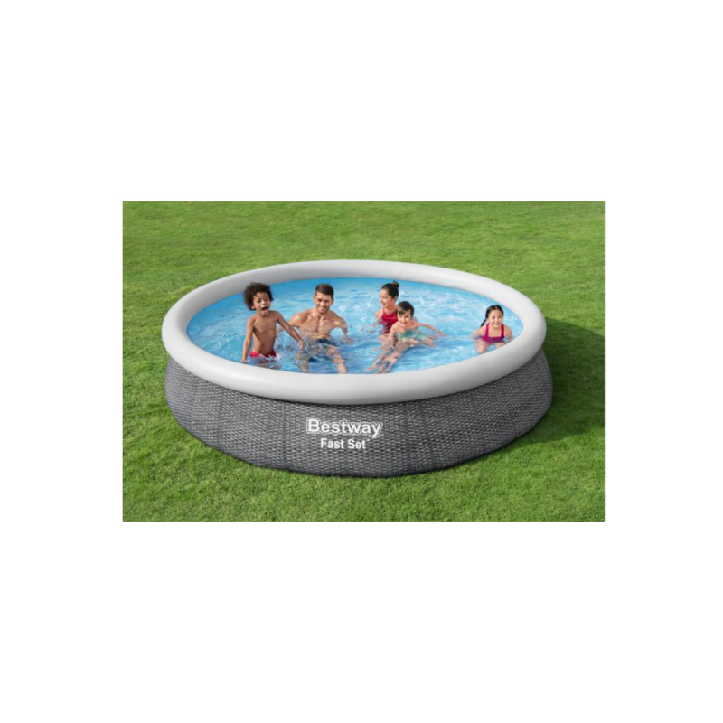 1 x Piscine auto-portante ronde BESTWAY - 366 x 76 cm - 1249 L - motif rotin - Fast Set - 57443