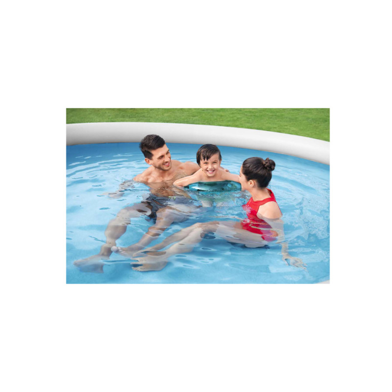 Quand l'été approche, la piscine auto-portante ronde BESTWAY - 366 x 76 cm - 1249 L - motif rotin - Fast Set - 57274 n'aura aucun mal à se faire une place dans votre jardin ! Facile et rapide à monter grâce à sa conception auto-portante, elle est totalement adaptée pour que les enfants puissent s'amuser. Le liner DuraPlus avec 3 épaisseurs renforcées est là pour assurer une excellente résistance et éviter les perforations. La piscine peut contenir jusqu'à 1249 L d'eau et elle peut accueillir autant les petits que les grands. Tout a été pensé pour que l'installation soit sans prise de tête et sans qu'aucun outil ne soit nécessaire. Il suffit simplement de gonfler l'anneau supérieur (pompe vendue séparément) puis la piscine se lèvera toute seule à mesure que l'eau la remplira. Quand vient l'hivernage, le rangement est lui aussi d'une grande simplicité.