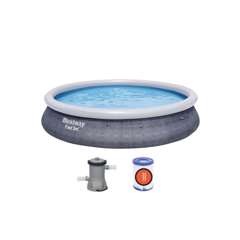 1 x Piscine auto-portante ronde BESTWAY - 396 x 84 cm - 7340 L - motif rotin - Fast Set - 57376