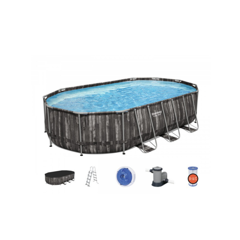 1 x Piscine tubulaire ovale BESTWAY - 610 x 366 x 122 cm - 20 241 L - motif bois - Power Steel - 5611R