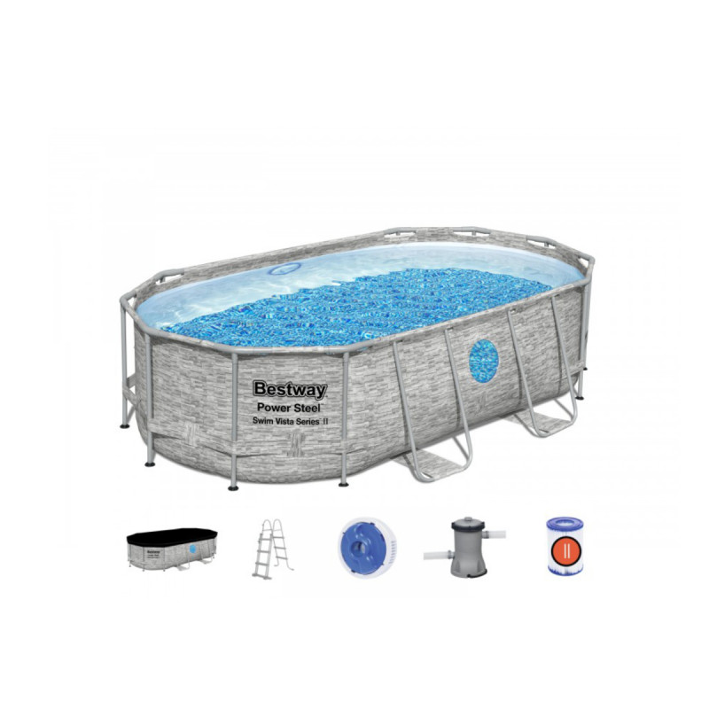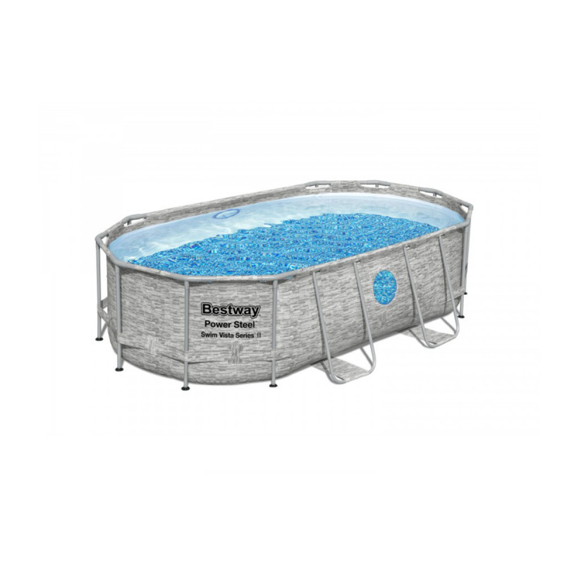 1 x Piscine tubulaire ovale BESTWAY - 427 x 250 x 100 cm - 7 250 L - motif rotin - Power Steel - SwimVista - 56714