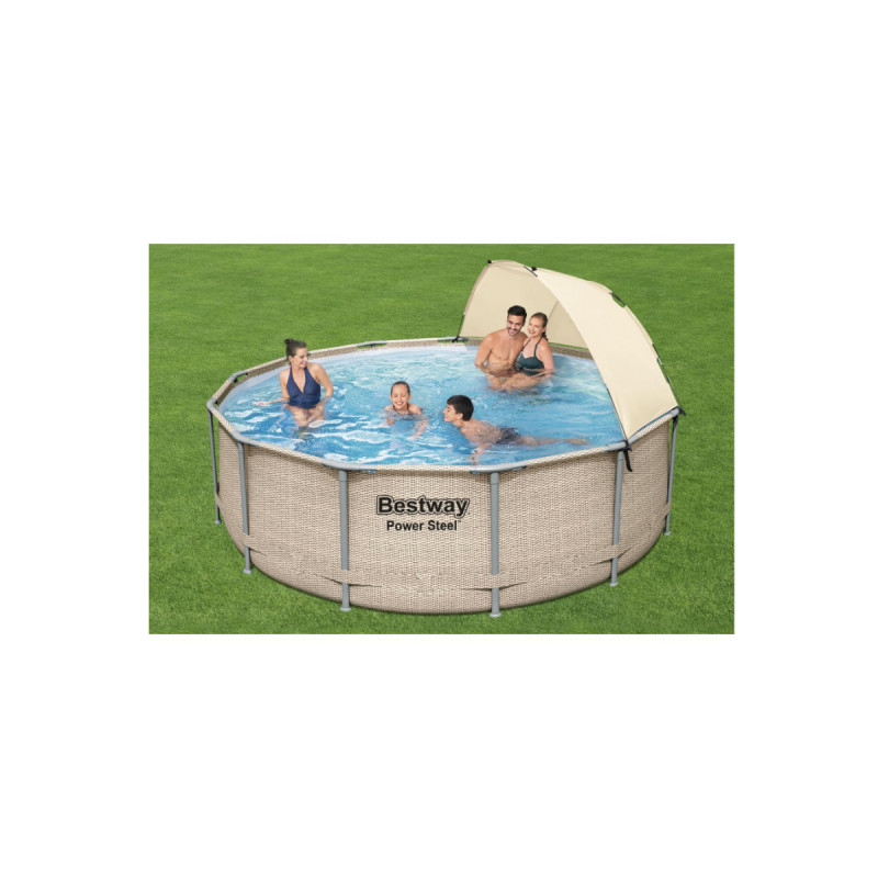 1 x Piscine tubulaire ronde BESTWAY - 396 x 107 cm - 11 133 L - avec auvent - Steel Pro - 5614V