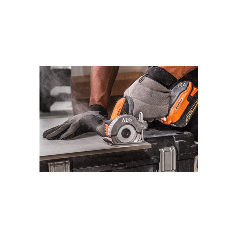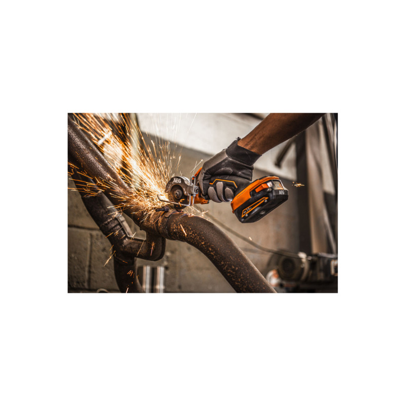 Pack AEG 18V - Mini scie multi-matériaux Brushless - Batterie 4.0 Ah - Chargeur, une mini scie multi matériaux compacte idéale pour la découpe de tiges ou barre en acier, inox, métaux non ferreux, découpe du carrelage, céramique, brique, maçonnerie, pierre, découpe de planches PVC, de cloisons sèches, de bois ainsi que des plaques de plâtre.