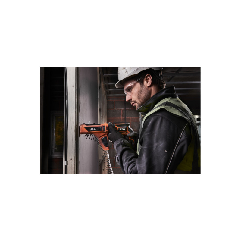Pack AEG 18V - Visseuse plaquiste Brushless - Batterie 4.0 Ah - Chargeur, cette visseuse plaquiste est conçue pour le montage et la fixation de plaques de plâtre. Elle est à réception Hex 1/4 avec un système de changement de porte-embout sans clé. Le revêtement de sa poignée SoftGrip assure à son utilisateur une prise en main agréable et parfaitement sécuritaire.