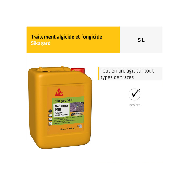 Un traitement algicide et fongicide SIKA - Sikagard-130 Stop Algues Pro - 5L