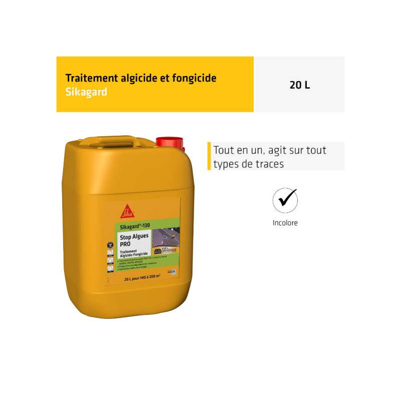 Un traitement algicide et fongicide SIKA - Sikagard-130 Stop Algues Pro - 20L