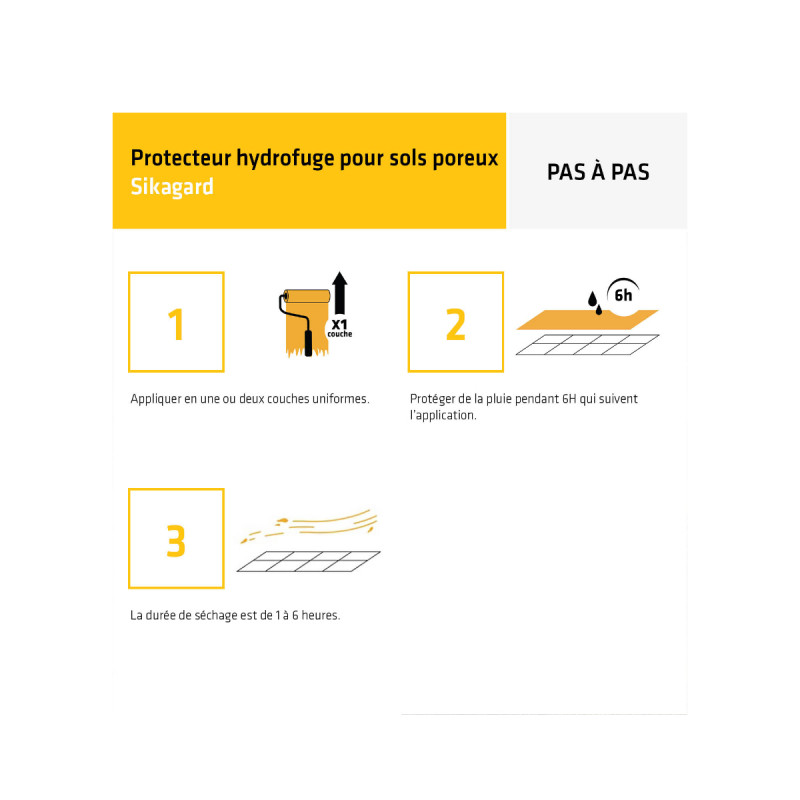 L'hydrofuge SIKA - Sikagard-212 Protecteur Sol Satine - 5L est une résine en phase aqueuse prête à l’emploi, résistante aux UV. Ce produit imperméabilise efficacement les supports poreux et les protège contre la pénétration de l’eau, de l’huile et de la plupart de tâches (graisse, salissures, etc). Il agit également comme liant efficace lors d’une utilisation sur des joints de sable. Il pénètre profondément dans le joint, favorise le maintien en place des pavés et les protège des infiltrations. il est adapté aux surafces en béton, en pierre, en pavés, etc. Idéal pour les espaces piétons, les espaces exposés au trafic de véhicules, aux parking, aux terrasses, balcons, trottoirs, etc.