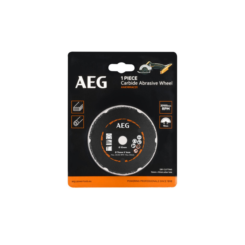 Disque abrasif carbure - 76mm - AAKMMAC01, pour tous les outils de tronçonnage sur des supports variés comme les cloisons sèches, plaques de plâtre, clous et bois.
