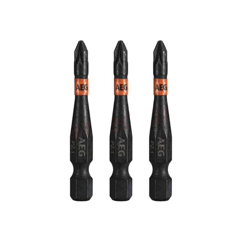 Embouts de vissage balistiques améliorés AEG - 50 mm - 3 pcs - PZ1, conçus pour fonctionner avec impact lors du montage et du démontage des fixations. En raison de la zone de torsion à couple élevé, la transmission de force est réduite, ce qui se traduit par une longue durée de vie.
