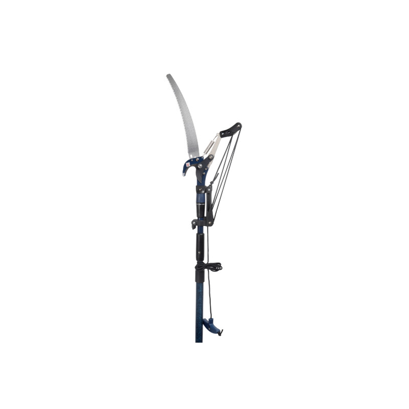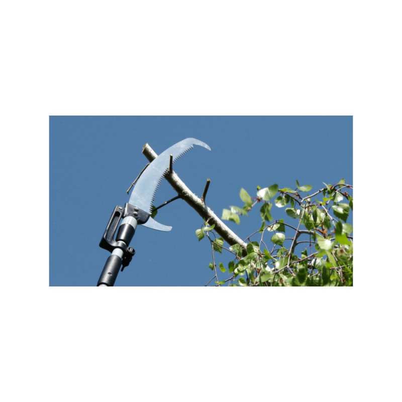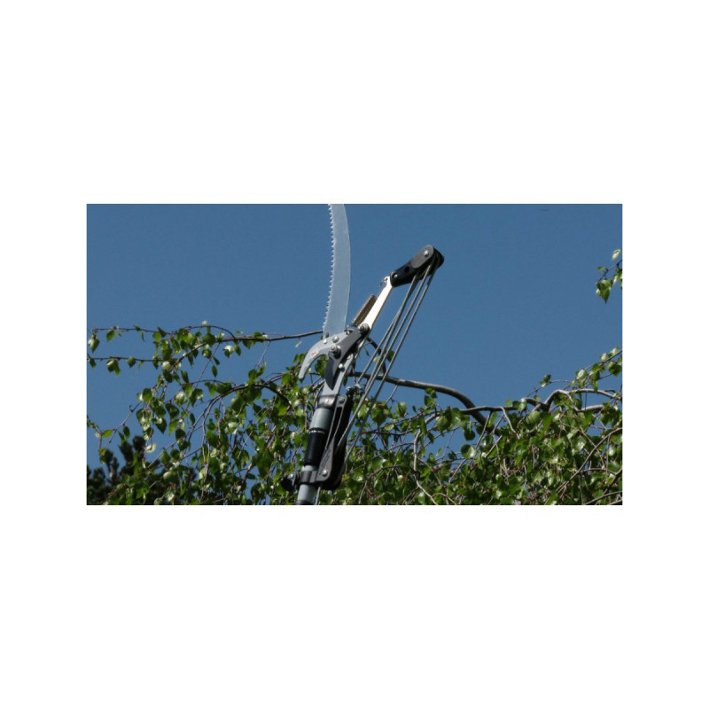 L'échenilloir télescopique 2 en 1 SPEAR & JACKSON, prêt à l'emploi possède 2 fonctions vous permettant de réaliser de l'élagage sans utiliser d'échelle. En effet, d'une part, il possède une lame d'ébrancheur permettant à l'aide d'une poulie de démultiplier l'effort. D'autre part, cet outil dispose également d'une scie à double denture permettant de scier en tirant et en poussant. De plus, le produit est doté d'un manche télescopique de 2 x 1,20 capable de s'allonger pour atteindre 4,5 m de hauteur et ainsi vous pourrez couper plus aisément les branches difficiles d'accès sans prendre d'échelle. A l'aide cet outil, votre découpe sera comprise entre 25 et 30 mm de diamètre. De plus, son manche en fibre de verre vous offrira un grand confort d'utilisation. Grâce aux lames en acier composées de carbone recouvertes de Téflon,, votre coupe sera nette, précise et l'écrasement des branches sera minimes. Ainsi vos végétaux pourront cicatriser rapidement.