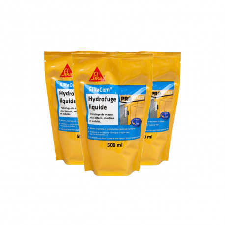 Un lot de 3 hydrofuges de masse liquide SIKA SikaCem - Pour béton et mortier - 500ML