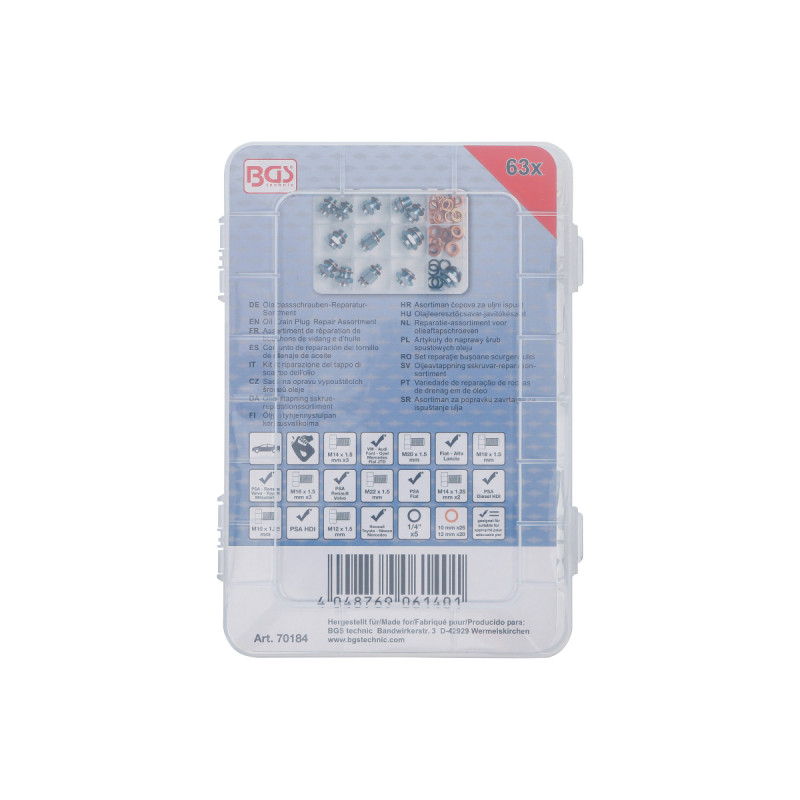 Un assortiment de réparation de bouchons de vidange d’huile BGS TECHNIC - 63 pcs - 70184