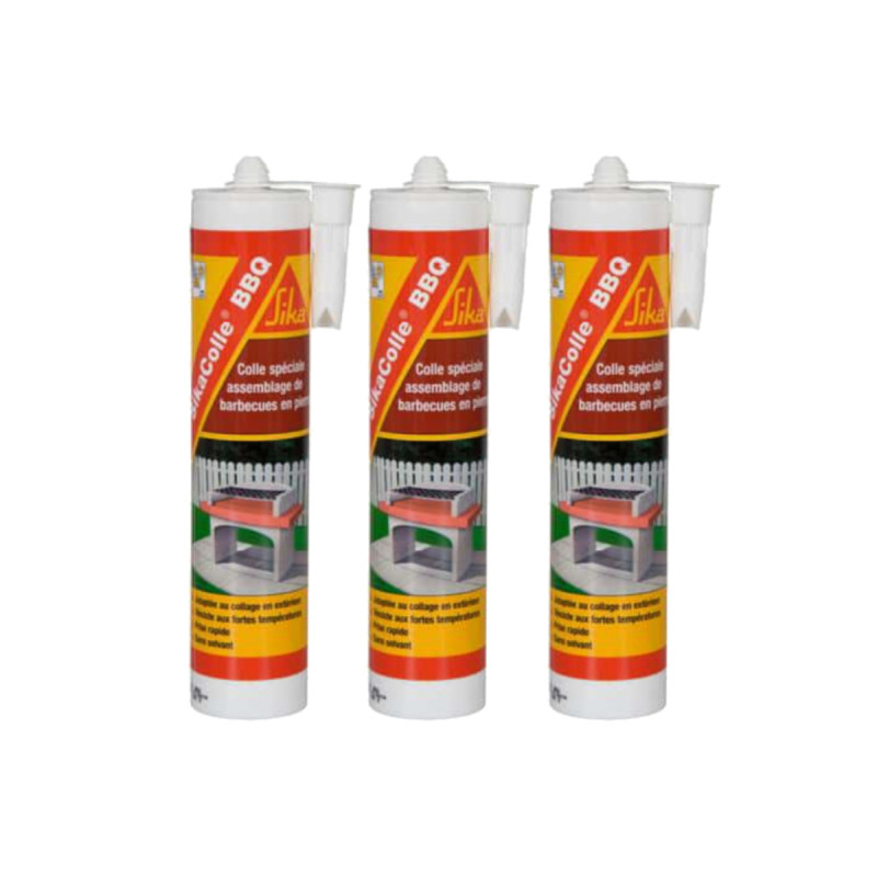 Un lot de 3 colles pour assemblage de petits barbecues en pierre - SIKA SikaColle BBQ - Beige clair - 500g