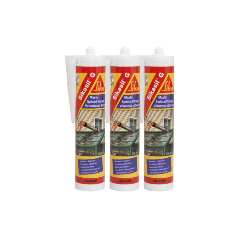 Un lot de 3 mastics élastique silicone - SIKA Sikasil G - Blanc - 300ml