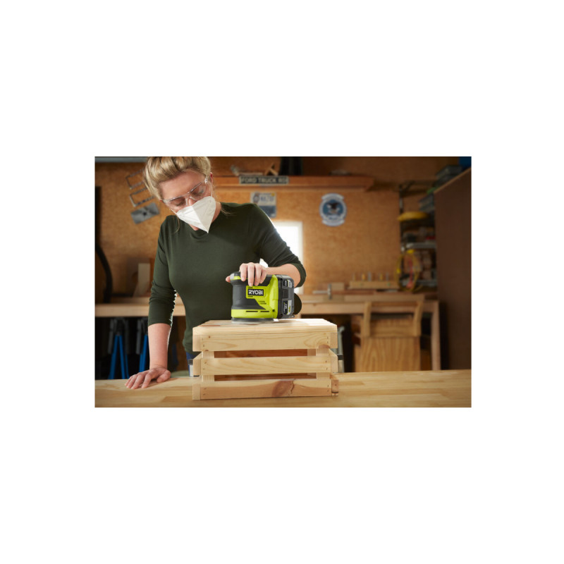 Pack RYOBI Ponceuse excentrique 18V One+ RROS18-0 - 1 Batterie 5.0Ah - 1 Chargeur rapide RC18120-150, avec une ponceuse idéale pour alterner entre des retraits de matière importants et des finitions plus douces. Elle propose des finitions uniformes et sans trace grâce au mouvement de rotation orbital. Son pommeau compact avec un revêtement GripZone micro-alvéolé, permet une prise en main ferme et confortable tout en assurant un maximum de précision. L'interrupteur est protégé afin que la poussière ne le bloque pas. Les abrasifs sont facilement changeables et un système d'extraction de poussière est intégré à l'outil pour ainsi laisser un espace de travail propre. Le pack contient également une batterie et un chargeur, pour une utilisation immédiate.