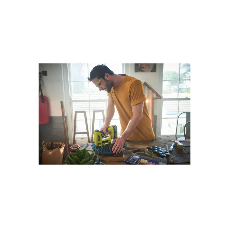 Le pack RYOBI Agrafeuse 18V - R18ST50-0 - 1 batterie 2.0Ah - 1 chargeur rapide, contient une agrafeuse pour fixer différents types de matériaux comme le tissu, la tapisserie, la moquette, le sol souple en PVC, le plastique, la laine de verre, le grillage fin... Cet outil est polyvalent et pratique pour les travaux de décoration, de rénovation, d'isolation, de sellerie. Une batterie et un chargeur compatibles avec les produits Ryobi 18V OnePlus complètent ce pack.