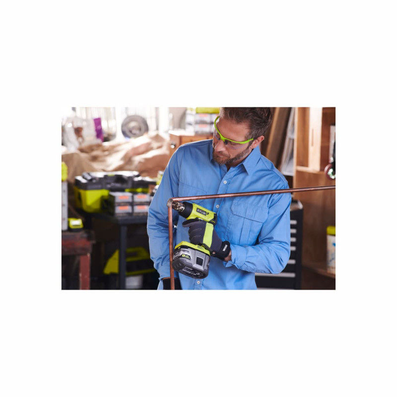 Le pack RYOBI Pistolet à air chaud 18V R18HG-0 - 1 batterie 2.0Ah - 1 chargeur rapide RC18120-120 qui contient un pistolet à air chaud sera l'allier idéal pour éliminer les peintures sèches, le silicone, la colle, les matériaux plastiques PVC, pour découper ou même couder des tuyaux. Avec une buse de concentrateur pour le chauffage direct, parfaite pour enlever la peinture ainsi qu'une buse à réflecteur pour rediriger la chaleur, pensée pour des applications telles que flexion de tuyaux.