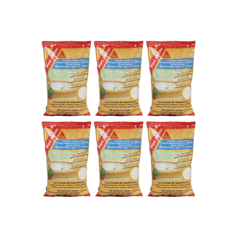 Un lot de 6 additifs en poudre pour imperméabiliser les mortiers et bétons - SIKA Super Sikalite - Blanc - 1kg