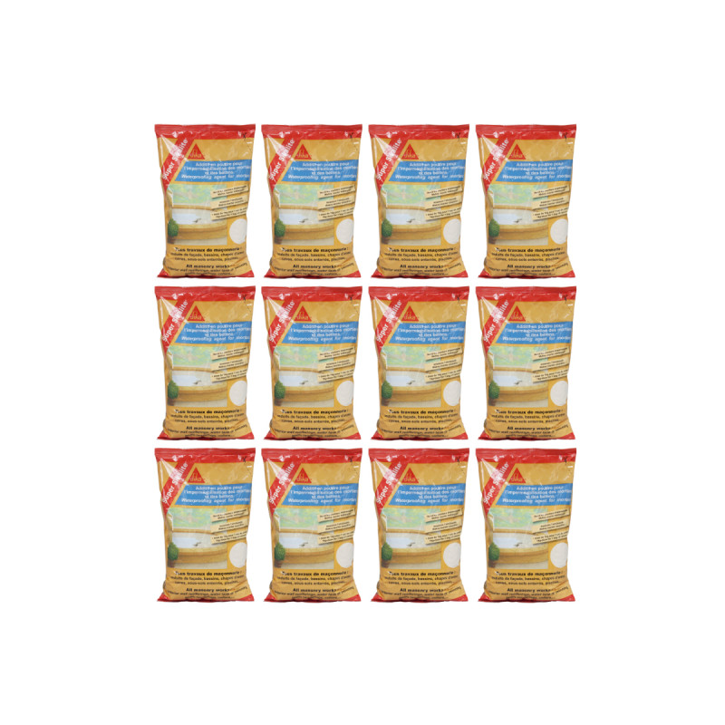 Un lot de 12 additifs en poudre pour imperméabiliser les mortiers et bétons - SIKA Super Sikalite - Blanc - 1kg