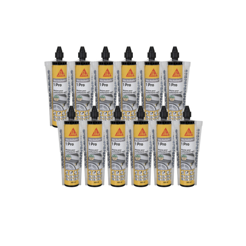 Une lot de 12 résines de scellement chimique rapide SIKA Anchorfix-1 Evolution - Gris - 300ml