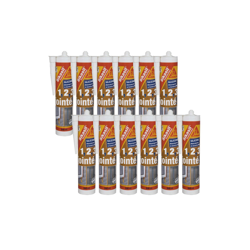 Un lot de 12 mastics silicone SIKA Sikasil construction - Transparent - 300ml