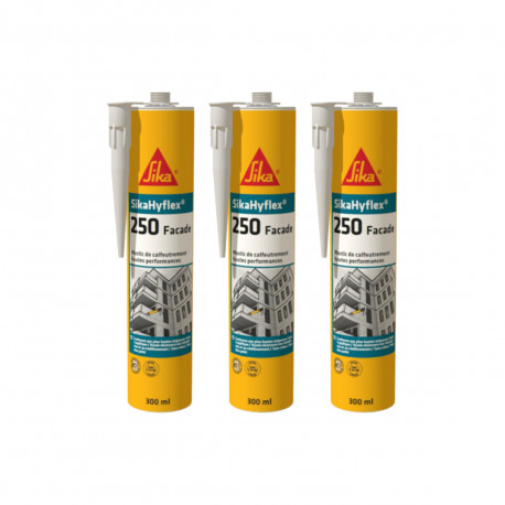 Un lot de 3 mastics haute performance SIKA SikaHyflex 250 Façade - Gris béton - 300ml