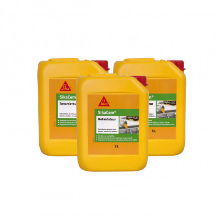 Le retardateur de prise pour bétons SIKA SikaCem Retardateur - 5L est un produit simple d'utilisation et facile à doser permettant de retarder la prise des bétons. Il sera adapté en cas de mise en oeuvre par temps chaud, pour les bétons qui réclament une longue durée pratique d'utilisation et pour ceux qui nécessitent des longs délais de finition.