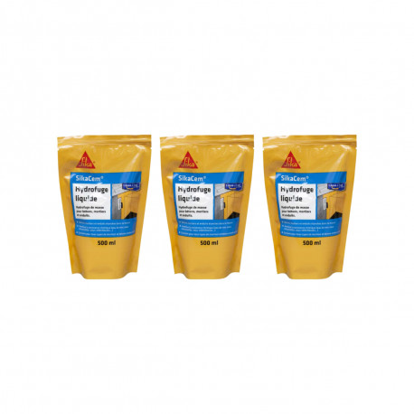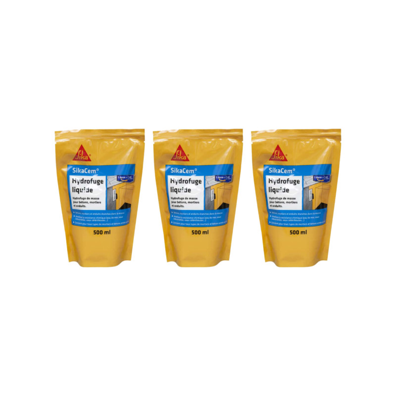Un lot de 3 hydrofuges de masse pour béton et mortier SIKA SikaCem Hydrofuge Liquide - 500ml