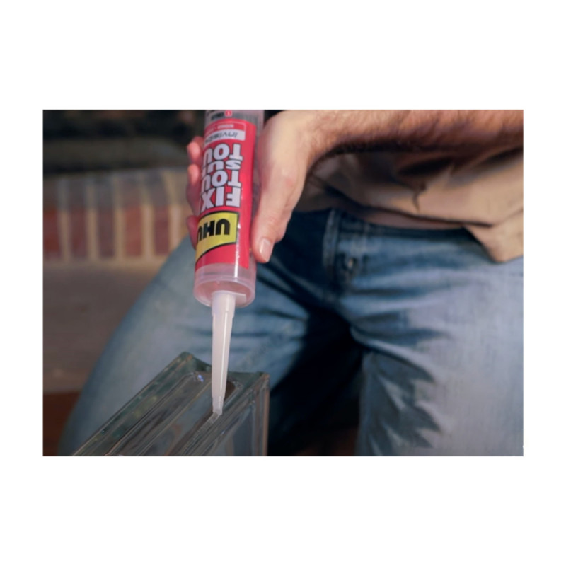 La colle UHU 35595, est également un mastic de montage très efficace pour le collage de matériaux même lourds tels que les carreaux en céramiques ou miroirs. Basée sur la technologie SMP exclusive, cette colle-mastic est d’une grande résistance et également exempte de solvants et d’acides. Invisible, la colle est idéale pour coller des objets transparents comme une table en verre.