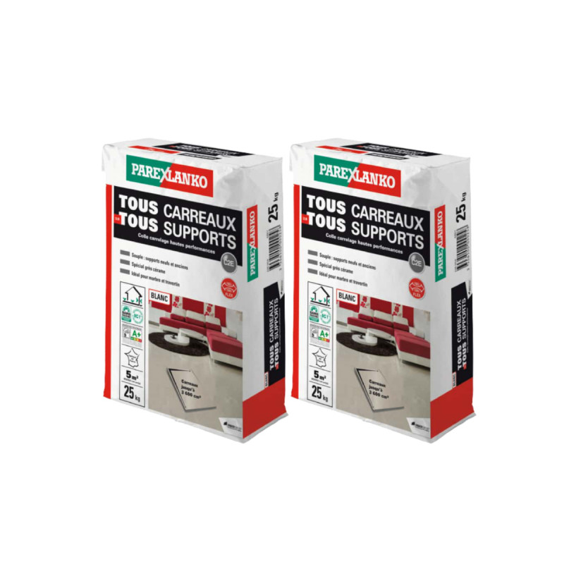 Un lot de 2 Colles carrelage améliorées PAREXLANKO Tous carreaux tous supports - Blanc - 50kg