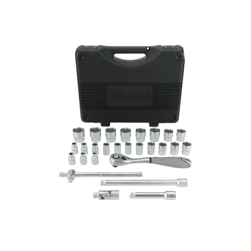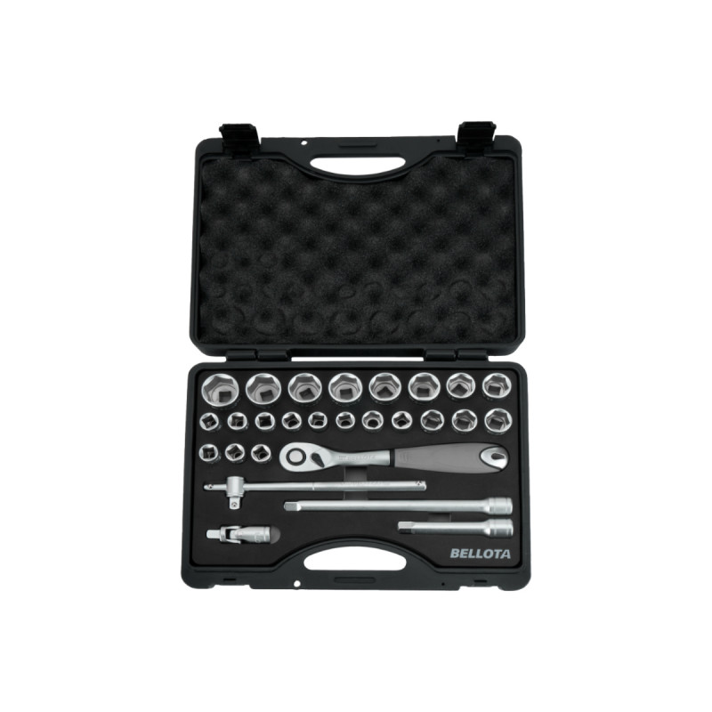 Cette caisse à outils BELLOTA pour clés à douille saura répondre à vos différents besoins de vissage. Facile à transporter, cette mallette professionnelle dispose de 27 pièces qui vous seront utiles en mécanique (voiture, moto, vélo...). Ainsi vous pourrez y retrouver 22 douilles, un cliquets à 72 dents et ses 4 accessoires. Cet ensemble d'outils est fait d’acier chrome vanadium, ce qui le rend résistant à la corrosion et vous assure une durabilité pour un usage intensif.