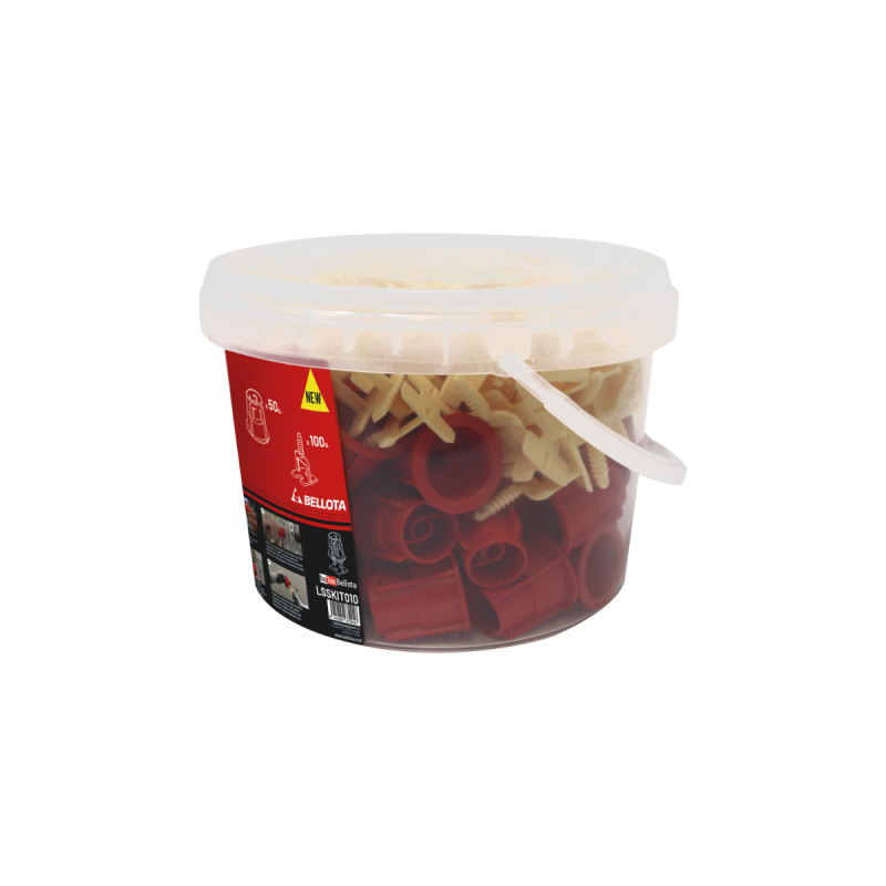 Ce kit de nivellement pour carrelage BELLOTA - LSSKIT010 garantit la précision dans les joints et élimine les saillies entre les carreaux. Gagnez du temps, avec vos seules mains vous serez en mesure de niveler les carreaux rapidement et confortablement, vous n'aurez pas besoin d'outils supplémentaires et vous pourrez atteindre tous les coins.