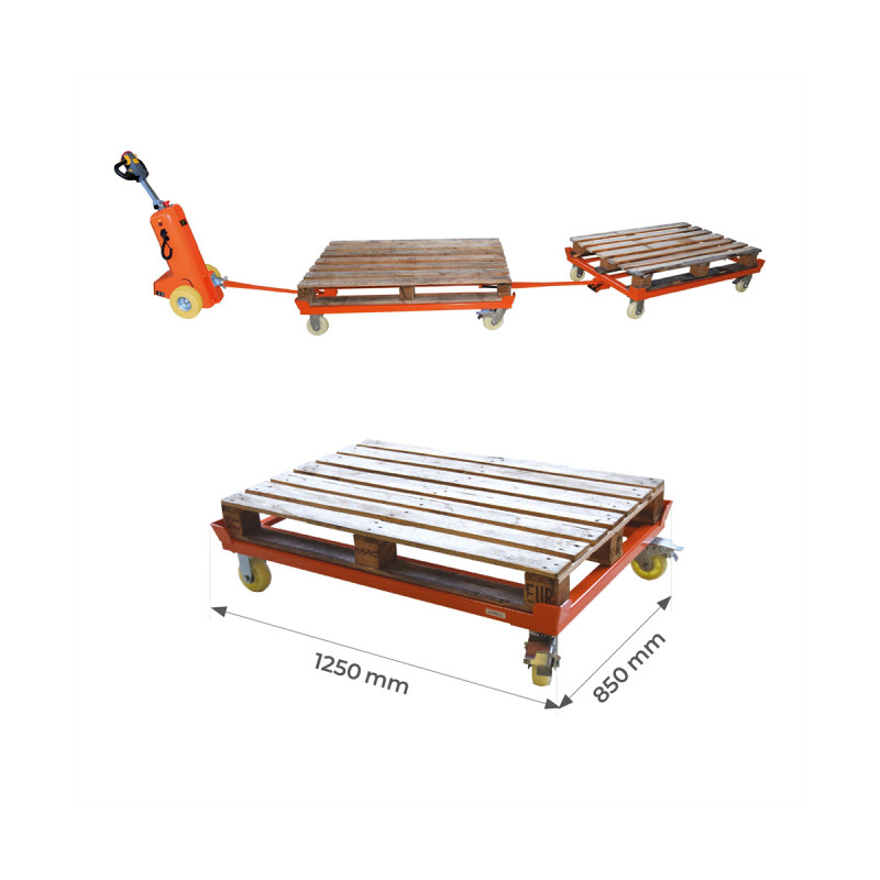 Le rouleur de palette STOCKMAN - TP1208N, conçu avec une structure mécano-soudée, est idéal pour déplacer des palettes européennes de dimensions 120 x 80 cm. La capacité de ce matériel de manutention est de 1 tonne. Il peut être configuré pour une utilisation tractée ou en train. Enfin, il est équipé de deux roues polyamide fixes et deux roues pivotantes à frein.