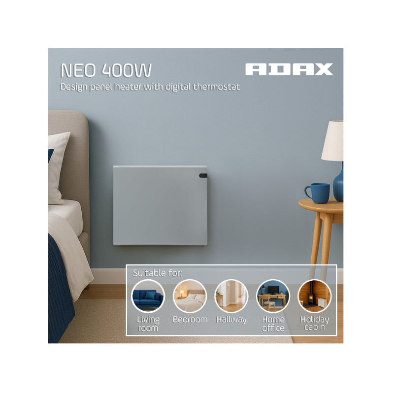 Un radiateur électrique ADAX - Argent - 400 W - 47,4 x 37 x 9 cm - Neo Basic NP04 KDT