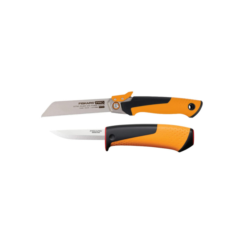 Ce pack FISKARS propose les 2 outils pratiques, faciles à transporter pour réaliser des coupes de précision même en extérieur. Vous y retrouverez une scie à coupe tirante pliante capable de couper de façon précise à ras dans du bois tendre. Elle se plie et se verrouille pour un maximum de sécurité et éviter tout déploiement accidentel de la lame. Elle est affûtée à 19 TPI ce qui permet des coupes précises et contrôlées, parfait pour des coupes à ras ou de finition. Gardez cet outil longtemps grâce à cadre métallique solide, et les dents de la lame remplaçable durcies par induction. De plus, ce pack comprend également un couteau indispensable pour vos travaux de bricolage. Il dispose d'une lame courte, affutée en acier de haute qualité. De plus, cet outil combine à la fois confort et sécurité.