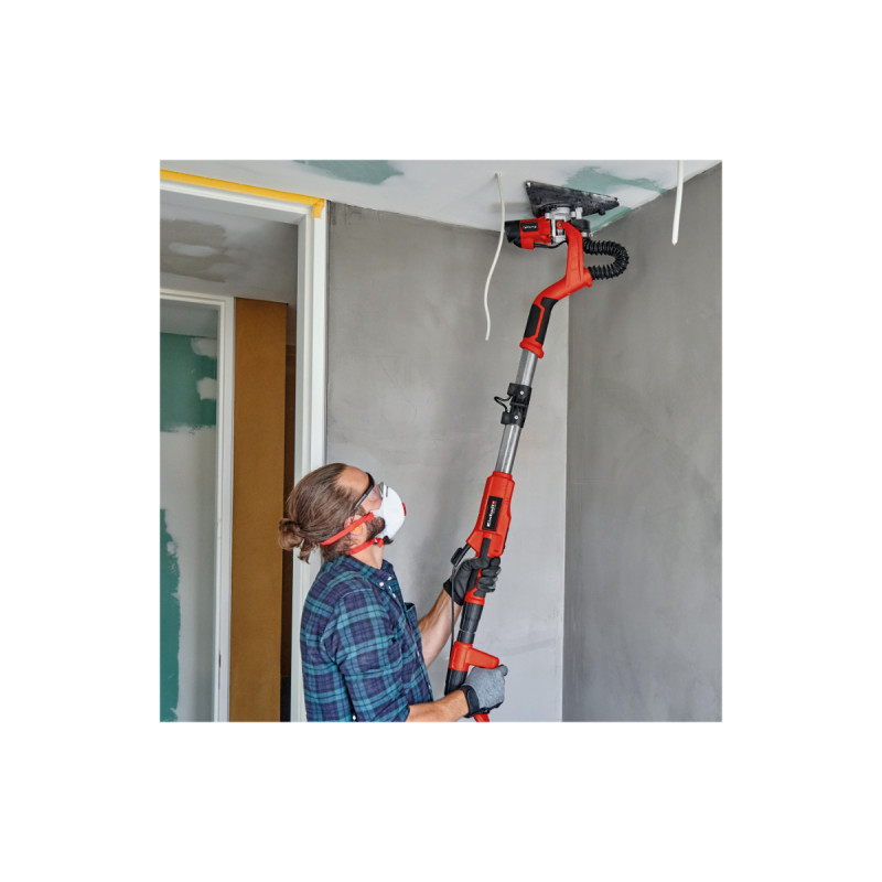 Cette ponceuse girafe EINHELL - TC-DW 225 permet de réaliser tous vos travaux de ponçage sur cloison sèche, notamment le ponçage des murs, des plafonds, l'élimination de papiers peints, peinture, crépis, etc. Cet appareil dispose d'une grande puissance de 750 W, couplé à sa vitesse de rotation pouvant atteindre jusqu'à 1500 tours/min. Vous pourrez ainsi aisément poncer et ainsi réaliser un travail de qualité. Elle est équipée d'un manche télescopique (jusqu’à 165 cm) et d’un plateau de ponçage monté sur ressorts pour laisser la tête mobile. Le variateur électronique permet d'adapter la puissance à vos besoins. Un système d'extraction récupère la poussière et vous pouvez également l'associer directement à un aspirateur pour un maximum de propreté.