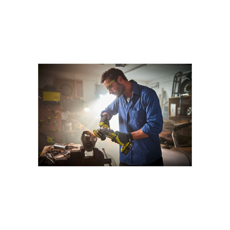 Pack RYOBI Meuleuse d'angle brushless R18AG7-0 - 18V One+ - 1 batterie 2.0Ah - 1 chargeur rapide RC18120-120 - Kit 6 disque 125 mm, pack parfait pour le travail du métal, de la pierre, du parpaing, du ciment, du marbre, etc. Batterie et chargeur rapide compris. Sa poignée auxiliaire 3 positions avec revêtement anti-dérapant offre une meileure prise en main de la machine pour un confort optimisé.