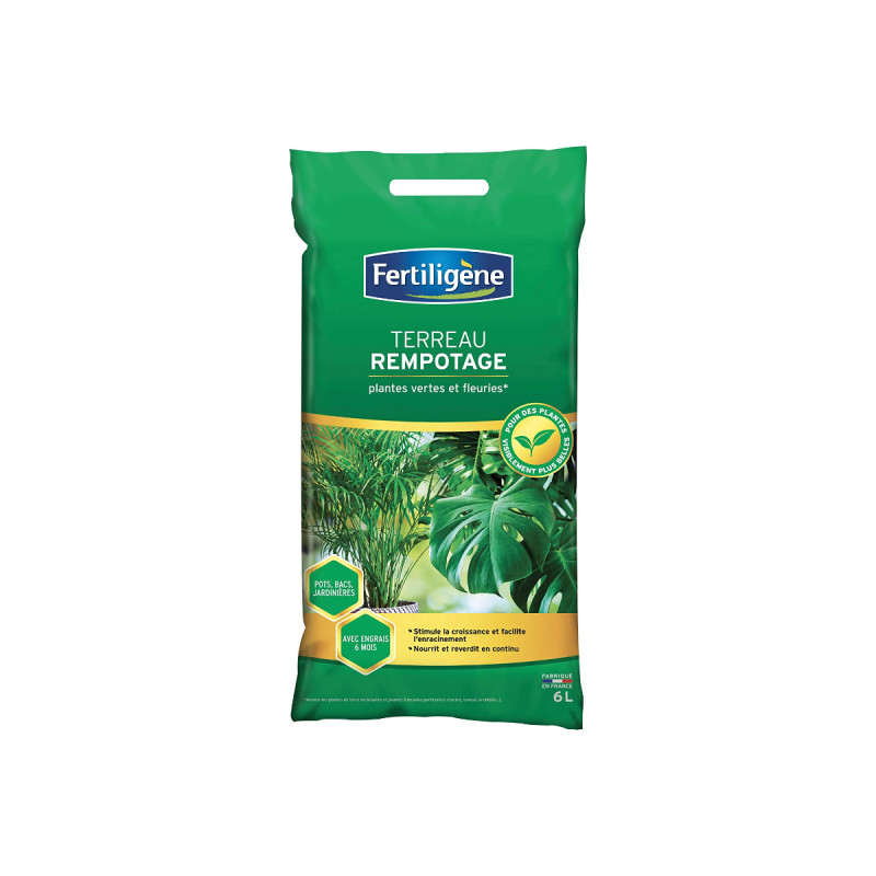 Un terreau rempotage FERTILIGÈNE Plantes vertes et fleuries - 6L