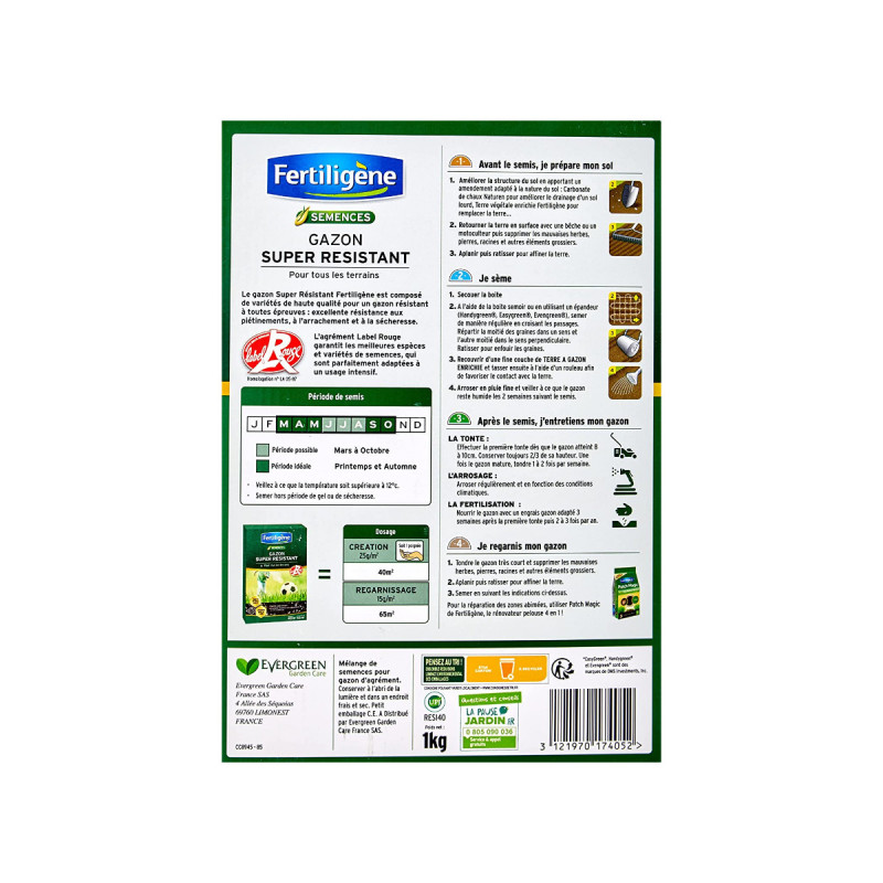 Gazon super résistant FERTILIGÈNE - Label rouge - 40m² - 1kg :