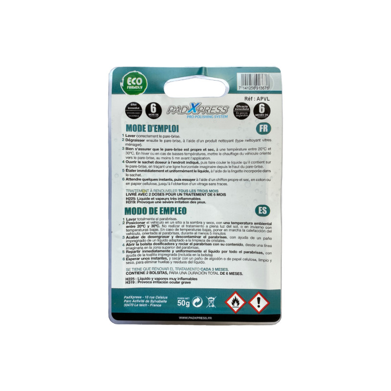 Un paquet de lingettes protection anti-pluie - PadXpress Auto - Pour pare-brise de voiture