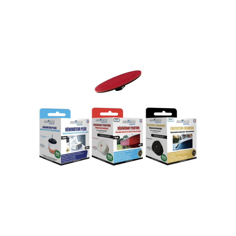 Ce pack PadXpress Nautic comprend 3 produits complémentaires qui vous seront essentiels pour la rénovation de votre bateau. Il comprend un régénérant spécial plexiglass et polycarbonate avec son plateau 80mm, pour redonner son éclat aux pare-brises et hublots en une seule utilisation. Sa formule est désoxydante et non-abrasive. Il comprend également un polish rénégérant désoxydant pour coque de bateau peinte qui vous permettra de redonner un coup de neuf à la coque peinte de votre bateau qui s'oxyde avec le temps. Sa formule abrasive et désoxydante en fait une solution puissante qui régénère en un temps record votre coque de bateau (4 heures pour un bateau de 7 mètres). Enfin, un film protection céramique - pour l'entretien de la coque de votre bateau. En plus de lui redonner son éclat et sa brillance, il vient protéger la coque des impacts, coups, projections et amplitudes thermiques. Il dispose de propriétés anti-adhérentes et déperlantes. Les produits se présentent sous la forme d'une mousse avec réservoir intégré, dont le Pad se fixe directement sur une lustreuse pour l'application, le plateau adaptateur est compris dans le pack.