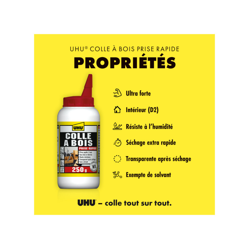 Colle UHU spéciale bois à prise rapide D2 - 250g - 38925