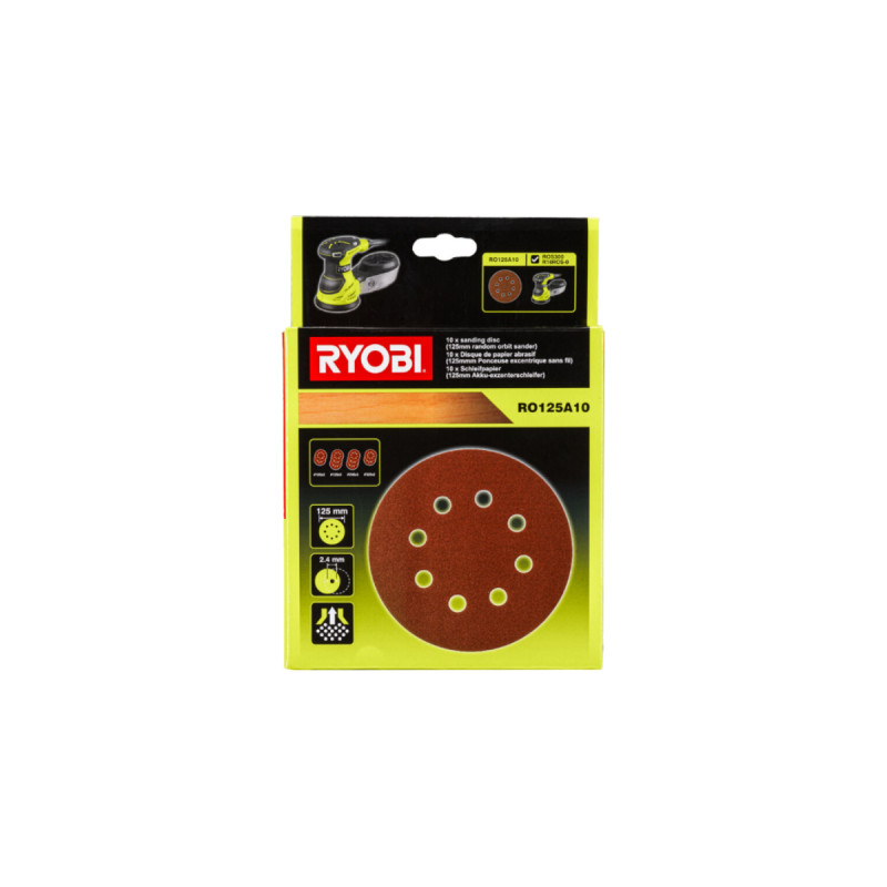 10 x Disques abrasifs Ryobi - 125mm - Grain 100, 120, 240 et 320 - RO125A10