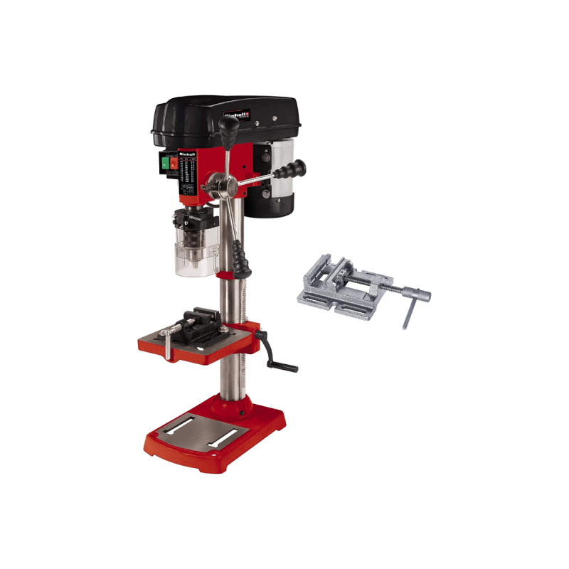 Ce pack EINHELL comprend une perceuse à colonne EINHELL - TC-BD 630 - 630W - 60mm, un outil précis pour réaliser vos travaux de perçage. Il convient pour une utilisation dans le bois ou le métal, et s'adapte à tous vos besoins grâce à ses 12 niveaux de vitesse. Le mandrin à couronne dentée de diamètre 1,5 à 16 mm accepte tous les forets standards, et le mandrin MK2 peut recevoir des forets à cône Morse pour plus de flexibilité. Ajustez facilement la profondeur de perçage, et la broche de perçage sur roulement à billes assure un fonctionnement facile et durable. L'utilisation est rendue confortable grâce aux poignées caoutchoutée du croisillon, qui permettent également de doser la force. Travaillez en toute sécurité grâce au pare-copeaux rabattable et à l'interrupteur marche/arrêt avec déclencheur à tension nulle. Cette perceuse à colonne s'associe avec un étau pour perceuse à colonne - 80mm compris dans le pack, pour pouvoir stabiliser des pièces en vues de les percer. En effet, grâce à ses mâchoires, vous aurez un meilleur maintien de la pièce.