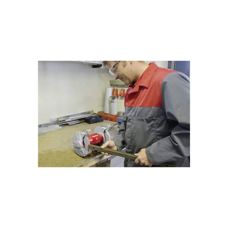 Ce pack EINHELL - Touret d'affûtage à eau ou à sec - TC-WD 200/150 - 250W - Meule - 150mm - Grain 60 permet de réaliser un affûtage en conditions humides ou sèches. Il convient pour l'affûtage de lames de tous types, les forets, ciseaux ou couteaux. L'outil garantit un résultat précis grâce aux arbres porte-meules montés sur roulement à billes sans jeu, et les quatre patins en caoutchouc qui amortissent les vibrations pour un maximum de stabilité. Le bâti métallique résistant et compact assure une longue durée de vie de l'outil, ainsi que le réservoir d'eau qui est en matériaux anticorrosion. Pour un travail en toute sécurité, l'outil dispose d'un pare-étincelle réglable sans outil et de capots de protections sur les côtés. Deux meules sont fournies : une à gros grains et une à grains fins et rotation lente. La meule supplémentaire incluse dans le pack vous permettra de poncer le métal.