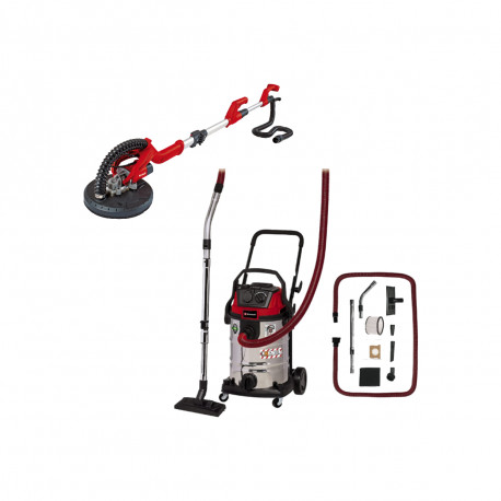 Ce pack EINHELL comprend un aspirateur eau et poussière - TE-VC 2230 SACL - 1400W - 30L qui convient autant pour une aspiration sèche qu'humide et sur tout type de sol et tapis : carrelage, moquette, etc. Le pack comprend également une ponceuse girafe - 1,65m - TC-DW 225 idéale pour tous vos travaux de ponçage sur cloison sèche, notamment le ponçage des murs, des plafonds, l'élimination de papiers peints, peinture, crépis, etc.
