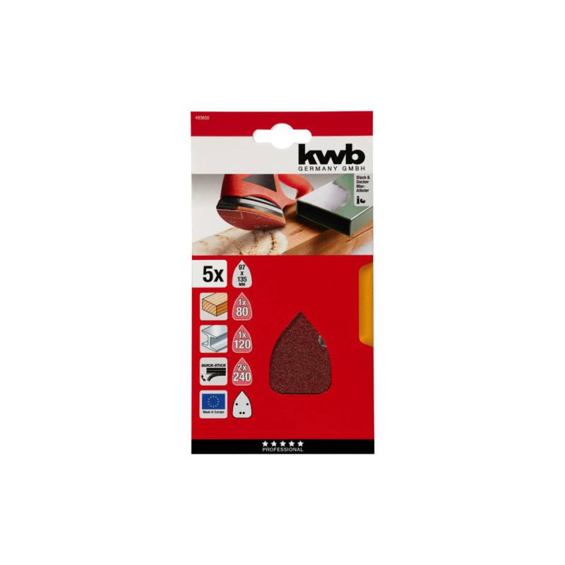 Lot de 5 triangles abrasifs de forme spéciale KWB - 136 x 96 mm - 93 mm - Grain 80-120-240