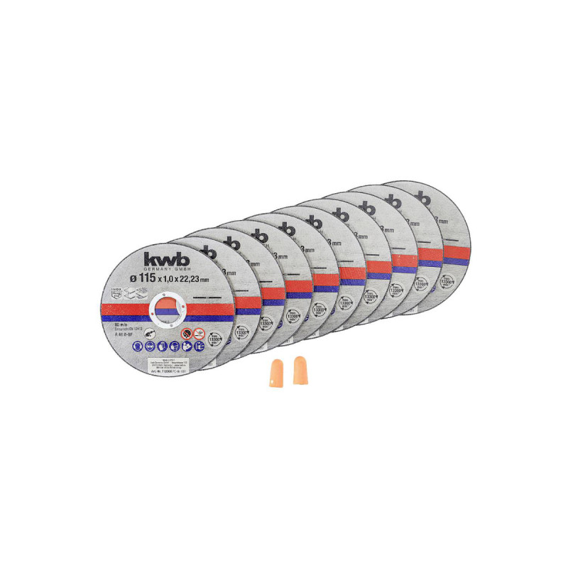 Lot de 10 disques extra fin à tronçonner KWB - 115 mm - avec bouchons